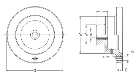 JS.105005 滿輻表盤手輪 顏色:黑色 材質(zhì):酚醛樹脂(膠木)、鋁合金 用途:適用于木工、食品、包裝、印刷等機械的精密指示或讀數(shù)調(diào)節(jié) 特性:外形美觀、堅固耐用、機械式結(jié)構(gòu)、